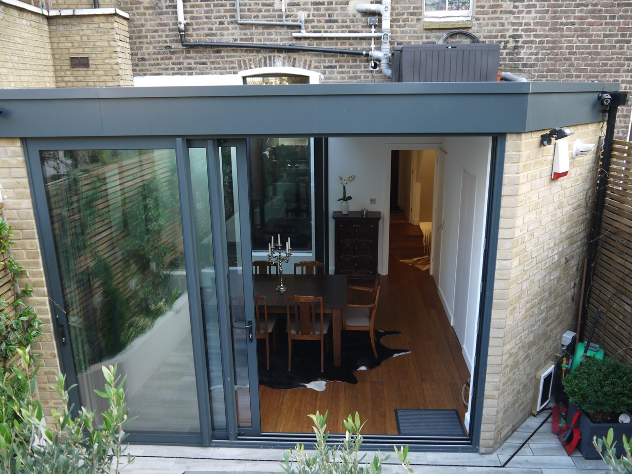 The clients owned the ground floor and basement duplex of an early 19th century listed property, with the kitchen and living room on the ground floor and the 2 bedrooms within the basement.  The brief was to create both an additional social space that would increase the amount of social activities and allow better access and enjoyment of the garden. The basement bedrooms were re-planned to be feel more spacious with a new 2nd ensuite bathroom, more discrete storage and increased internal daylight levels.