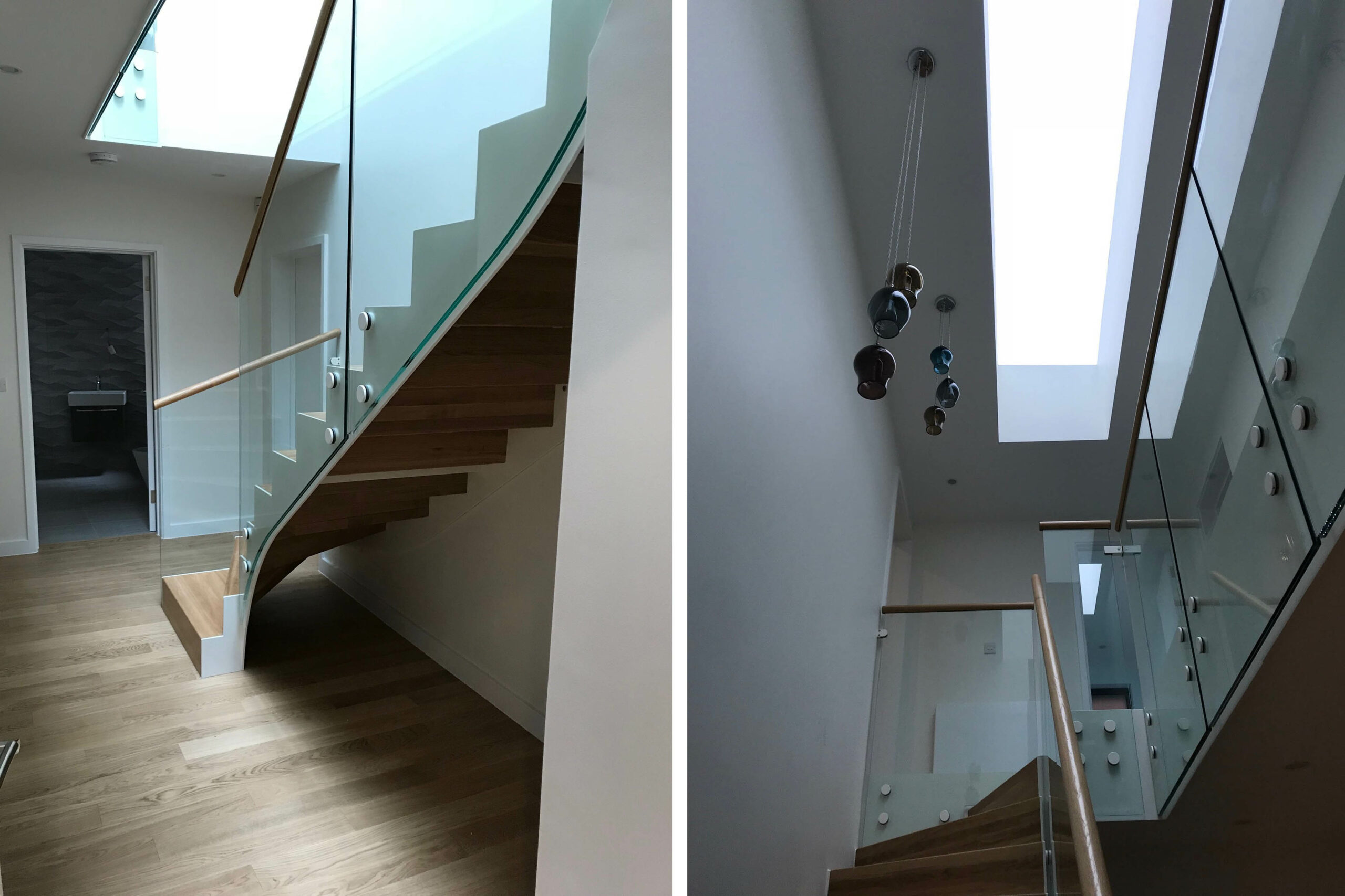 The interior has a beautiful ‘floating’ staircase with glass balustrade over which sits a 6 meter long roof light.  All rooms have ample daylight and many have views of the carefully crafted private garden.