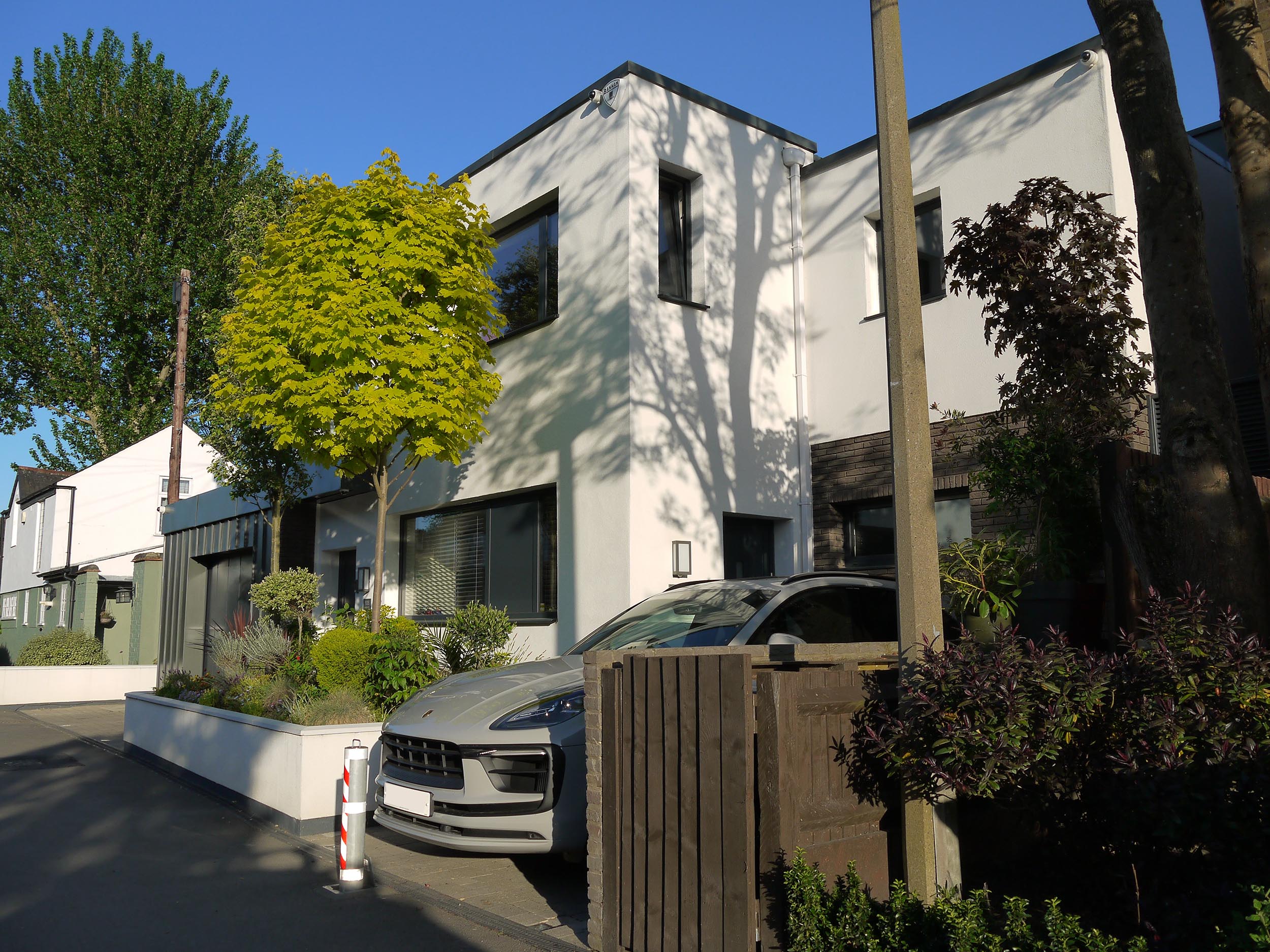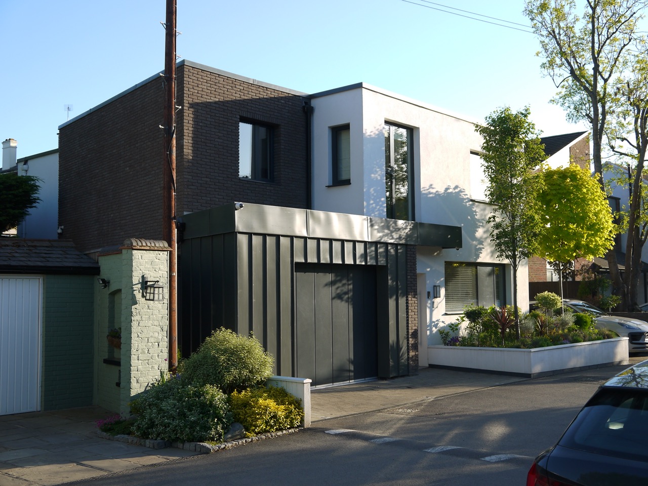 The building was to be modern in looks as well as performance with specialist Dutch thin bricks standing, seam dark Zinc or timber panelling, white render and large glazing elements including floor to ceiling high glass doors.