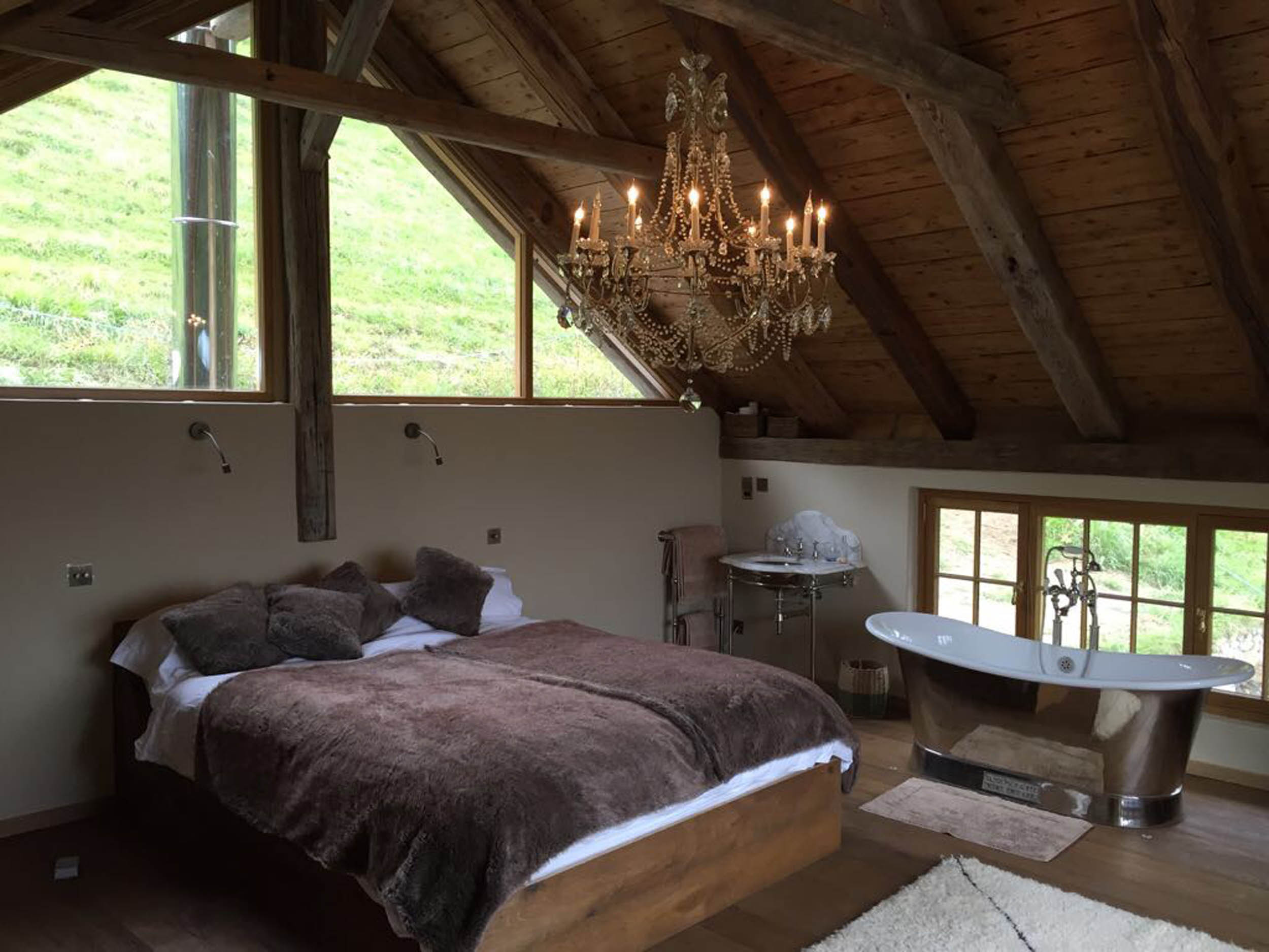 In the summer the external ‘walls’ fold away opening up the chalet to the fresh mountain air, gardens and fantastic views.